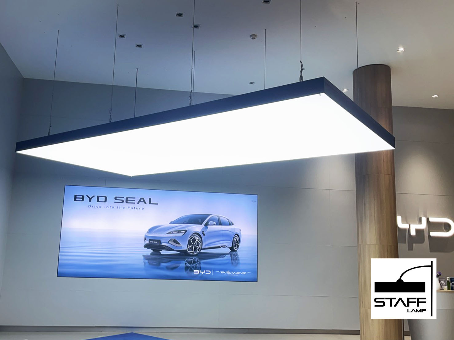 โคมไฟผ้าบาริซอล Barrisol (Barrisol Ceiling , Stretch Ceiling) แบบสี่เหลี่ยม ร้าน Staff lamp ได้ผลิตโคมไฟ สำหรับโชว์รูม BYD จำนวน 5 สาขาในภาคเหนือ ได้แก่ สาขาสันทราย, มหิดล, ราชดำเนิน, ฝาง และจังหวัดลำพูน